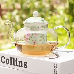 Chaleiras de vidro personalizadas com borosilicate, chaleiras de água de vidro de 600ml/800ml/1000ml com filtro de aço inoxidável